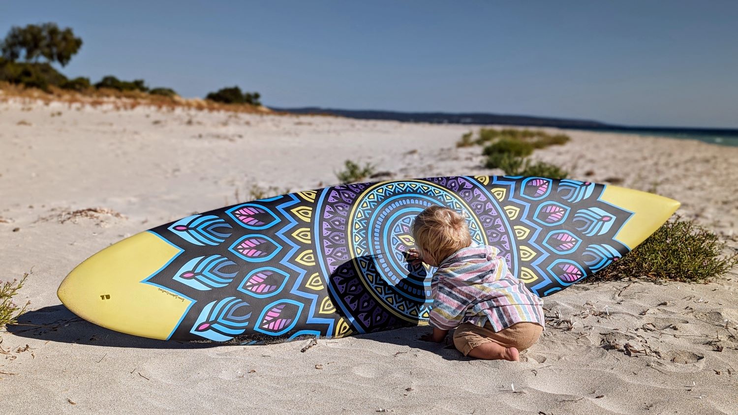 Sloane’s Surfboard Sloane’s Surfboard A commissioned surfboard in celebration of Sloane's first birthday. Mural Artist Cale Perth, Western Australia Contact Artist More creations from Seven Spheres Celestial Grid Folio Celestial Grid Inception Folio Inception The Unfolding Folio The Unfolding Sloane’s Surfboard Folio Sloane’s Surfboard Green Surfboard Mandala Folio Green Surfboard Mandala Meelup Surfboard Folio Meelup Surfboard Surfboard Mandala Folio Surfboard Mandala Poolside Mural Folio Poolside Mural The Great Wave Folio The Great Wave Biophilic Resonance Folio Biophilic Resonance Surfing the Great Wave Folio Surfing the Great Wave Mandala Mural Folio Mandala Mural Claire Bear2026-02-25T08:39:03+00:00